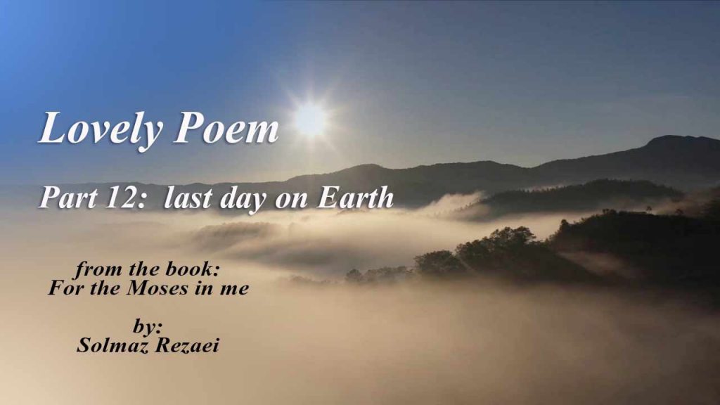 by: Solmaz RezaeiPart of the book: “For the Moses in Me” My DarlingI maybe find you on the last day on Earth…We sat on a mountain […]